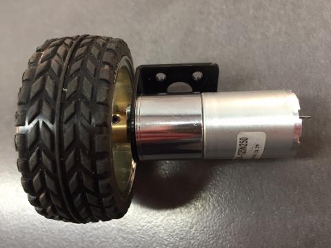 Quality 12V 100RPM metal gear motor with mount, hub and wheel.
