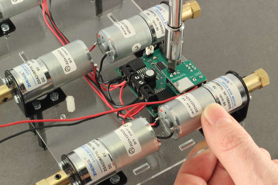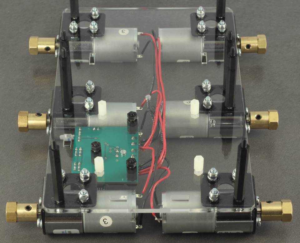 *Note the motors are in the same orientation - that is, with the stickers facing up. This keeps the polarity of the motor connections consistent which will be helpful soon.