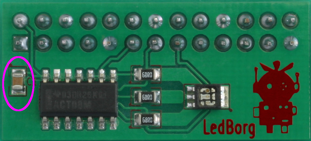 If you really wish to prevent the Raspberry Pi resetting when attaching the LedBorg you could carefully remove this capacitor with a soldering iron, however we do not recommend doing this since it may cause problems with the Raspberry Pi and we would not be responsible if it harmed the Raspberry Pi irreparably.