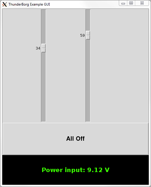 This script shows how you can make a GUI in Python which controls ThunderBorg, as well as providing an easy to use interactive demonstration of the board without needing any additional controller.